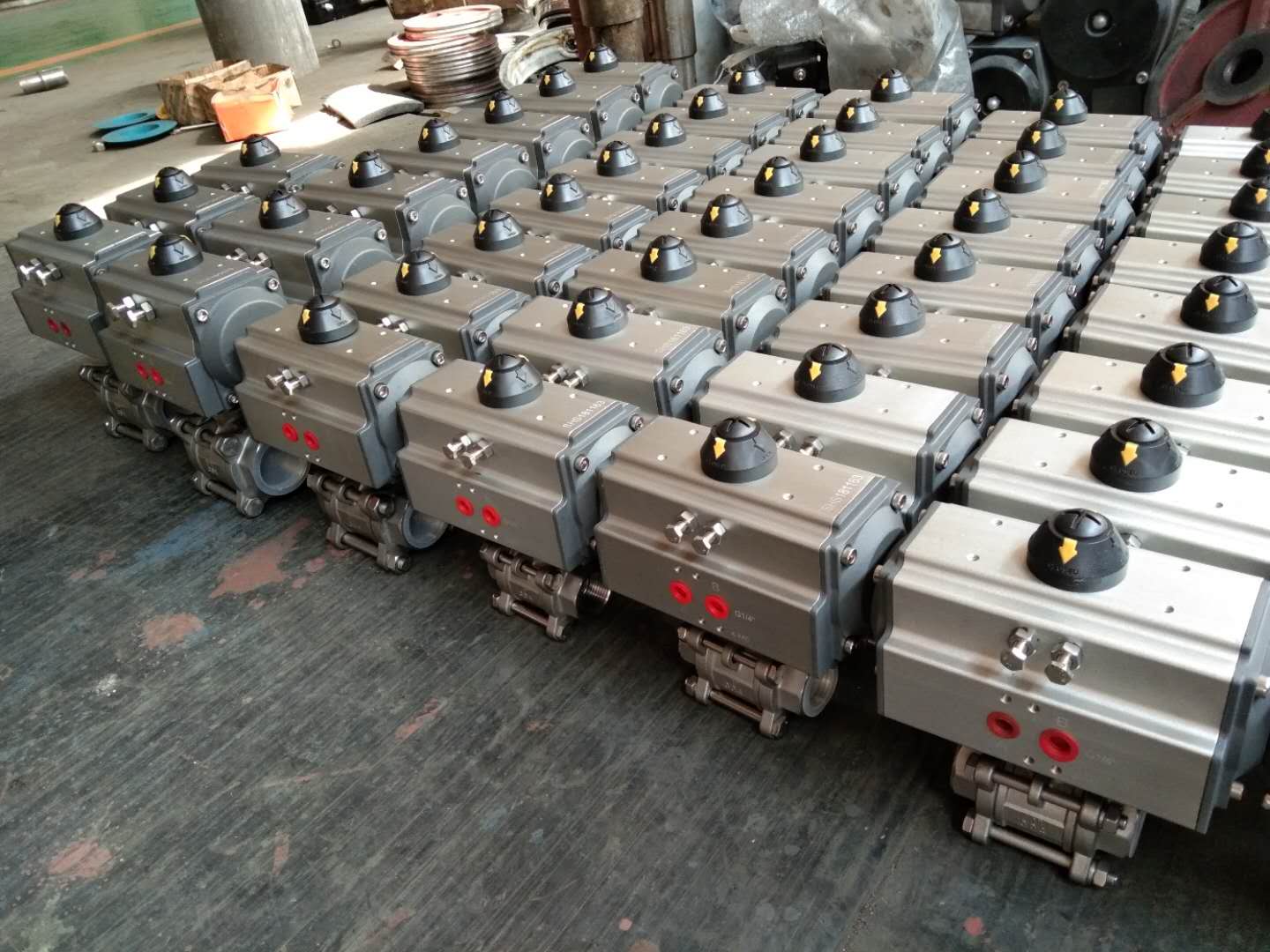 工作原理也是通过气动执行器90度旋转来驱动圆球旋转,以实现介质的流动和阻塞。执行器和阀体之间的直接连接缩减了时有发生故障的可能。适用于小型场合阀杆使用底部安装的构造,隐含反向密封。当阀腔压力异常增加时,阀杆不会受到影响,可以设立90°开关定位部门,并可以根据需添加锁以以防误操作。