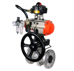 Q641F气动法兰球阀概述气动法兰球阀普遍用以天然气,原油产品,化学工业,冶炼,造纸和电力,采矿,印染,生物体制药,日用化工,食品和饮品等行业,水处理和空气处理流体截止控制,与自动化气动仪表。气动切断球阀一齐用到,使用唇形弹性密封环结构设计,以确保密封的可靠性。在低压,nz@或真空工作条件下,由板簧加载的阀座密封结构可以确保球阀的长期准确密封。中,高温球阀的阀座材质可以聚苯或金属材质。固定球阀可根据压力,介质性能和密封要求选项前球密封结构,后球密封结构或前后双密封结构。中高阀座材质温度球阀可以是对聚苯乙烯或金属材质。